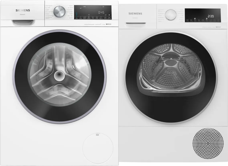 Je wast en droogt grote ladingen energiezuinig schoon met de Siemens WG44G2FLNL + Siemens WQ45G2D5NL wasmachine en droger set.